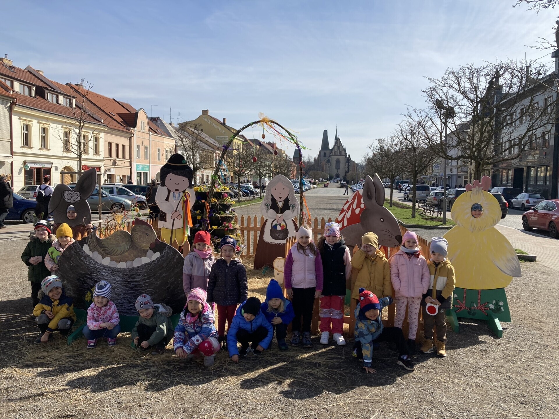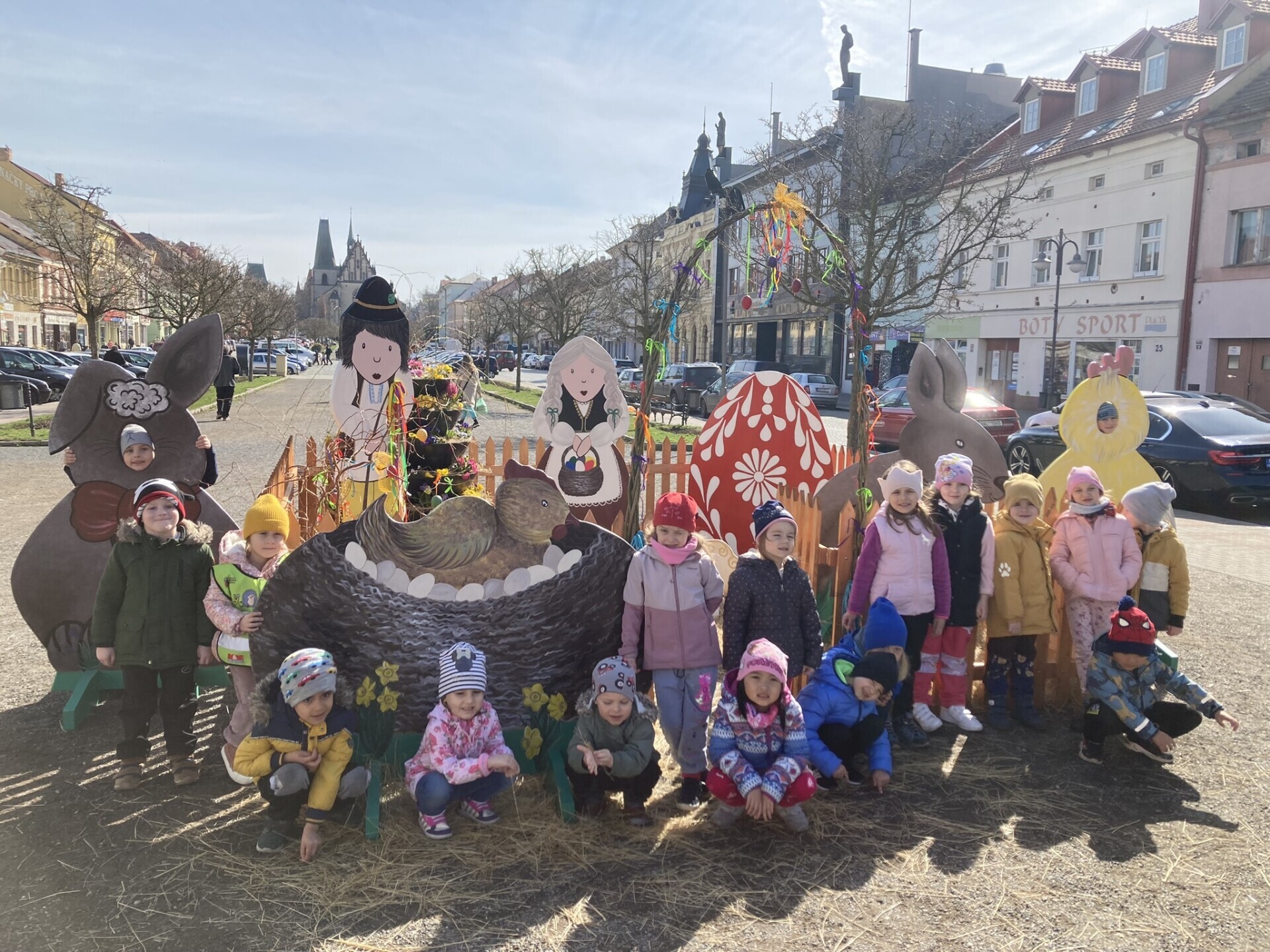U velikonoční výzdoby na náměstí a na hřišti